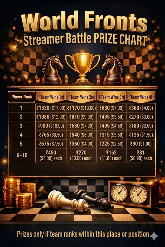 | Streamer Arena April '265+0 • Blitz • Rated • 2h | Battle of 14 teams | 310 | |